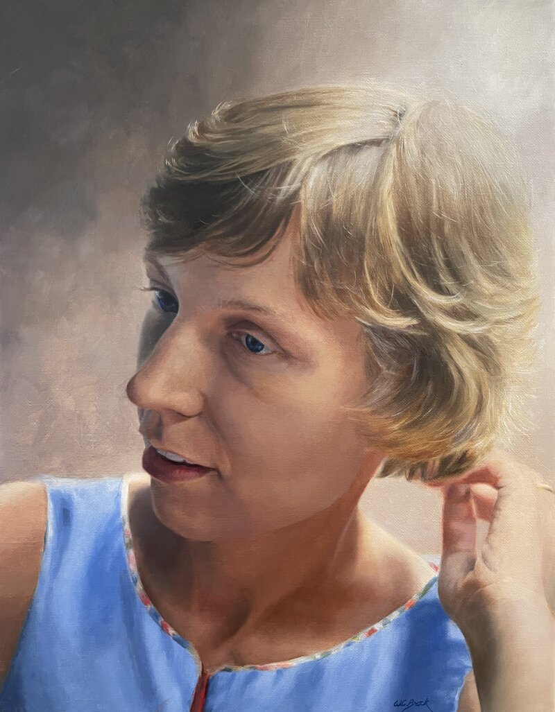 This posthumous commissioned portrait came from her loving husband, Colonel David Lofgren. The beauty and magic of oil paint is that it can make someone appear to be alive. To be able to paint this for the Colonel was not only a pleasure, but an honor.